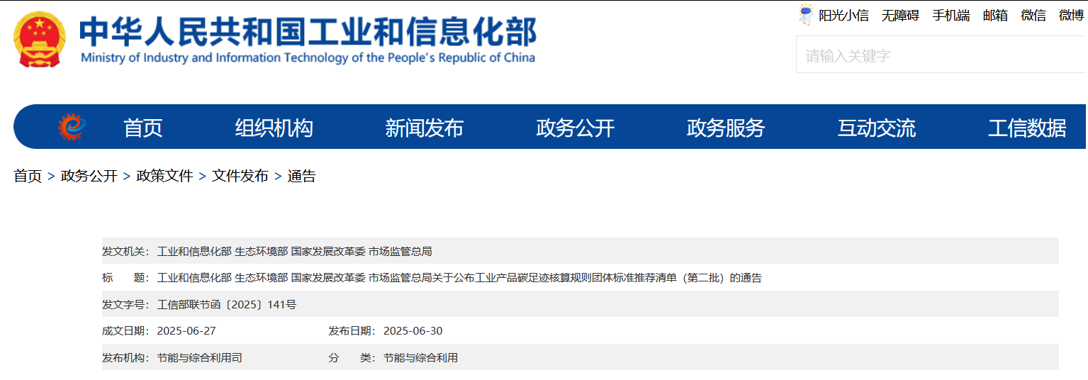 工業(yè)和信息化部等四部門關(guān)于公布工業(yè)產(chǎn)品碳足跡核算規(guī)則團體標(biāo)準(zhǔn)推薦清單(第二批)的通告 詳細(xì)>>